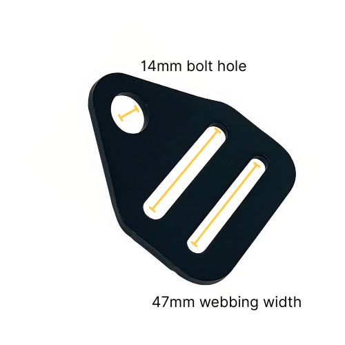 Check Compatibility Before Purchase: This product is designed to accommodate up to 50mm wide webbing and a 14mm bolt hole diameter.